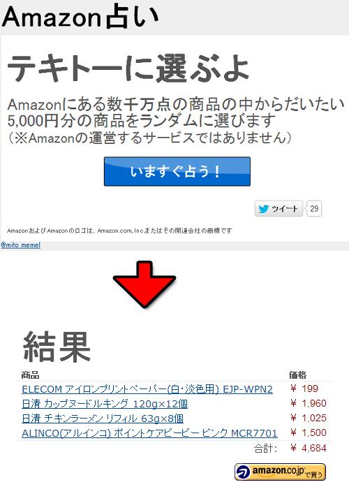 どのような商品が届くのかをシミュレートした『Amazon占い』というAmazonガチャシミュレーターが公開された。