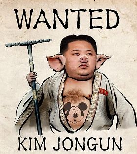 に金正恩氏を合成した画像に書き換えられた。正恩氏の腹部にはミッキーマウスが描かれ、ミッキーマウス