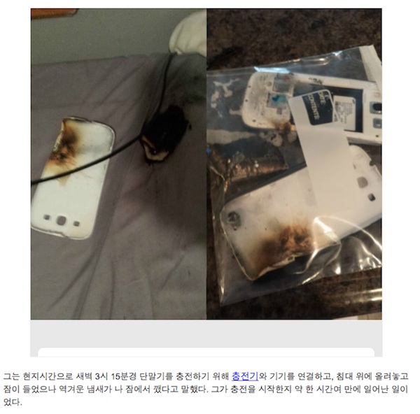 海外のIT専門メディアは29日、「米国のある男性が自身が使用するサムスンのギャラクシーS3が爆発したと主張した」と報じた。