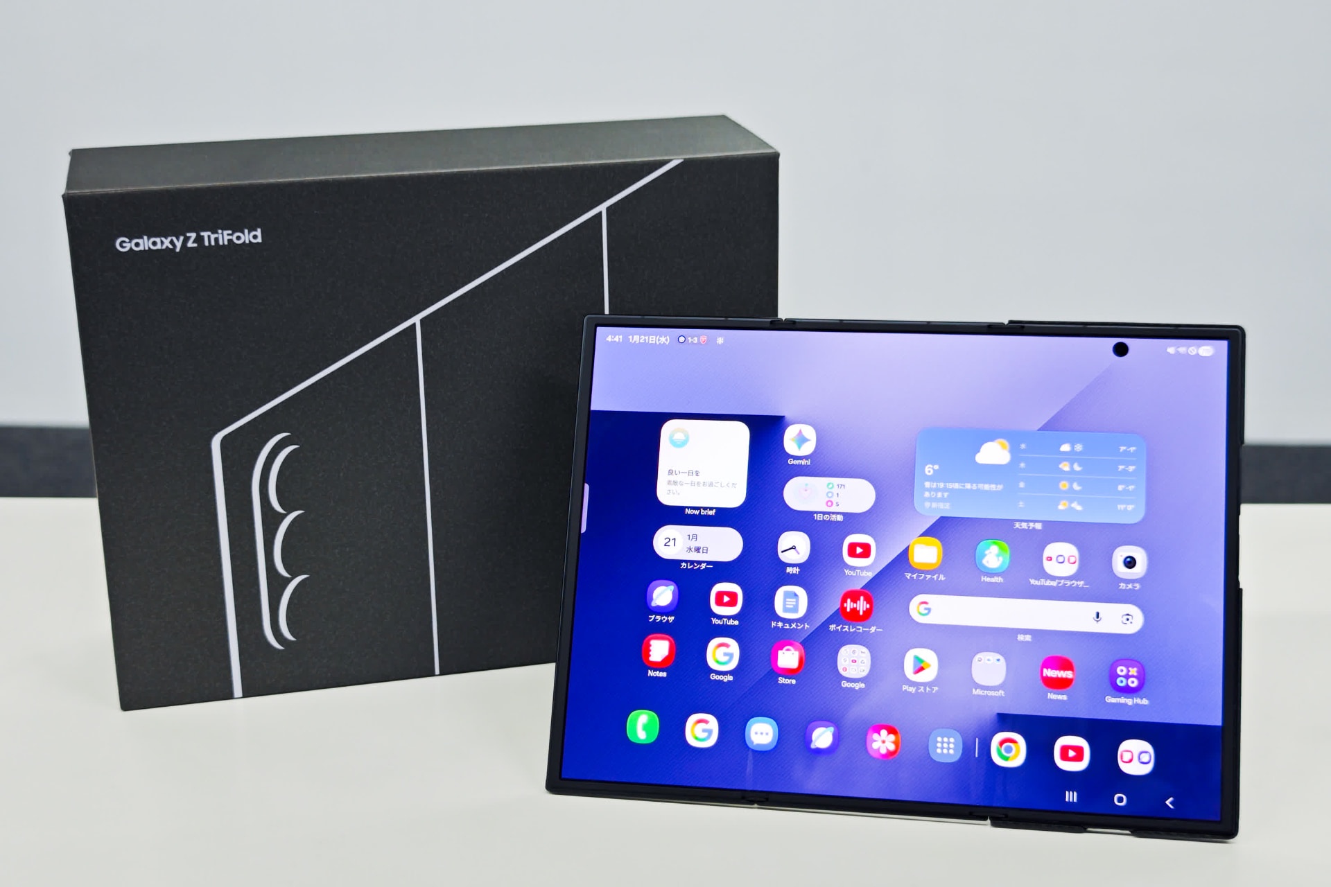 サムスン電子は2025年12月、3つ折りスマートフォン「Samsung Galaxy Z TriFold」をグローバル向けに発表した。韓国や中国ですでに発売されているほか、米国など一部地域でも販売が予定されているが、現時点で日本国内での発売予定はない。