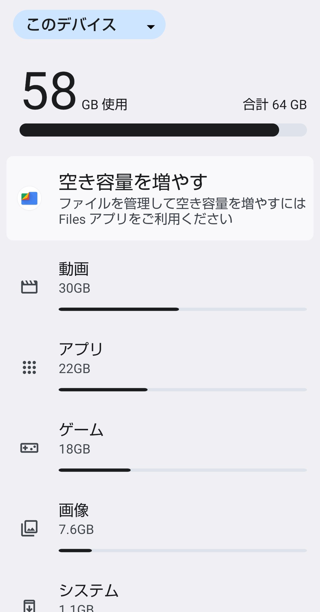 Files by Googleなら大まかにファイル種別ごとに分けてくれるから動画の項目見ろ