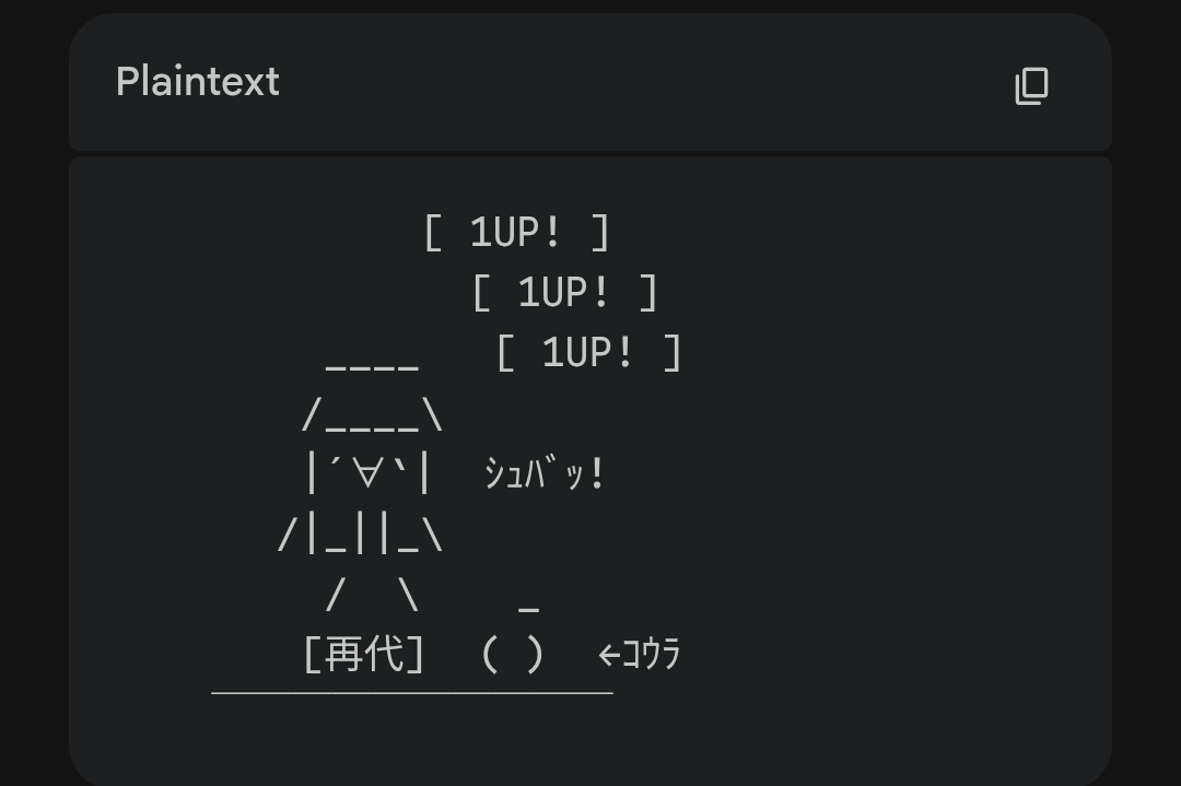 AIアホすぎワロタ ぼく「マリオが無限1upしてるアスキーアートを作ってください」→結果wwww